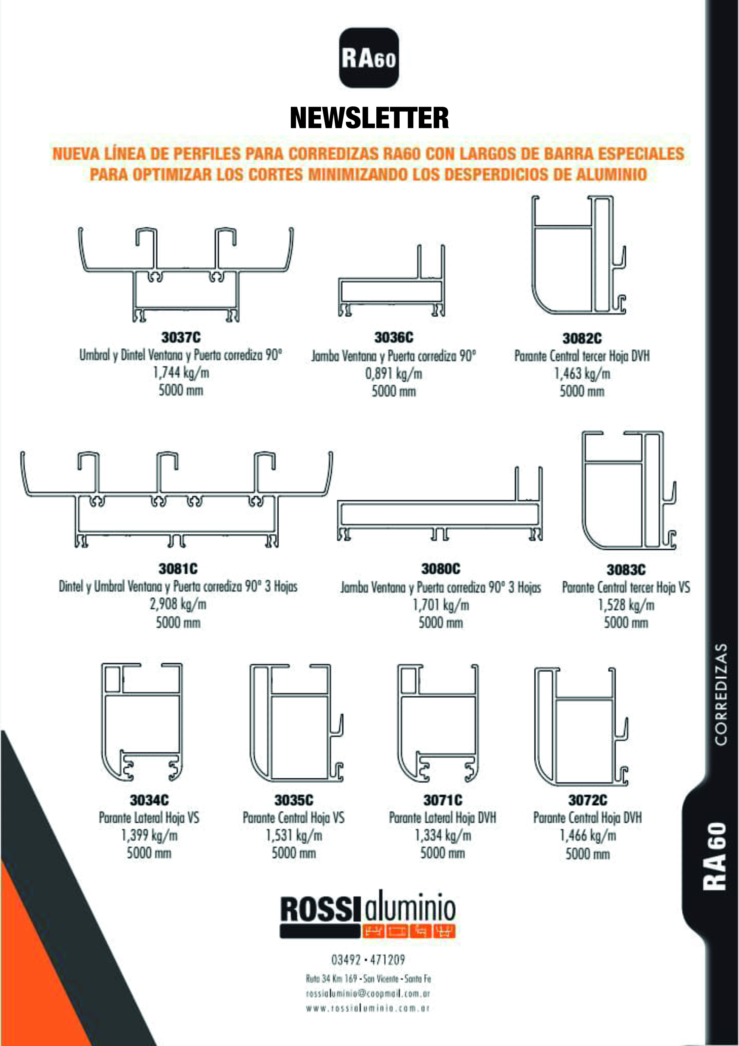 Nueva línea de perfiles para corredizas RA60 con largos de barra especiales para optimizar los cortes minimizando los desperdicios de aluminio.
