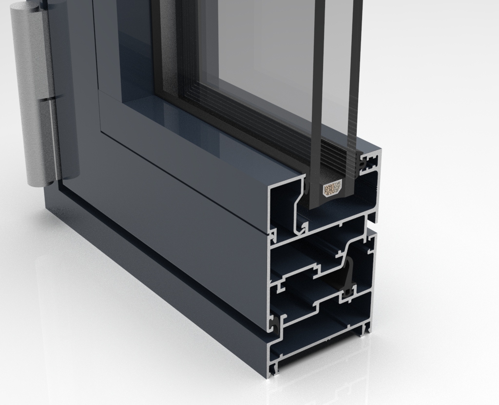 Sistema de ventanas oscilobatientes Triple Contacto de 60mm, coplanar o escalonada con Cámara Europea, Tapajuntas clipable y Cámara Compensadora